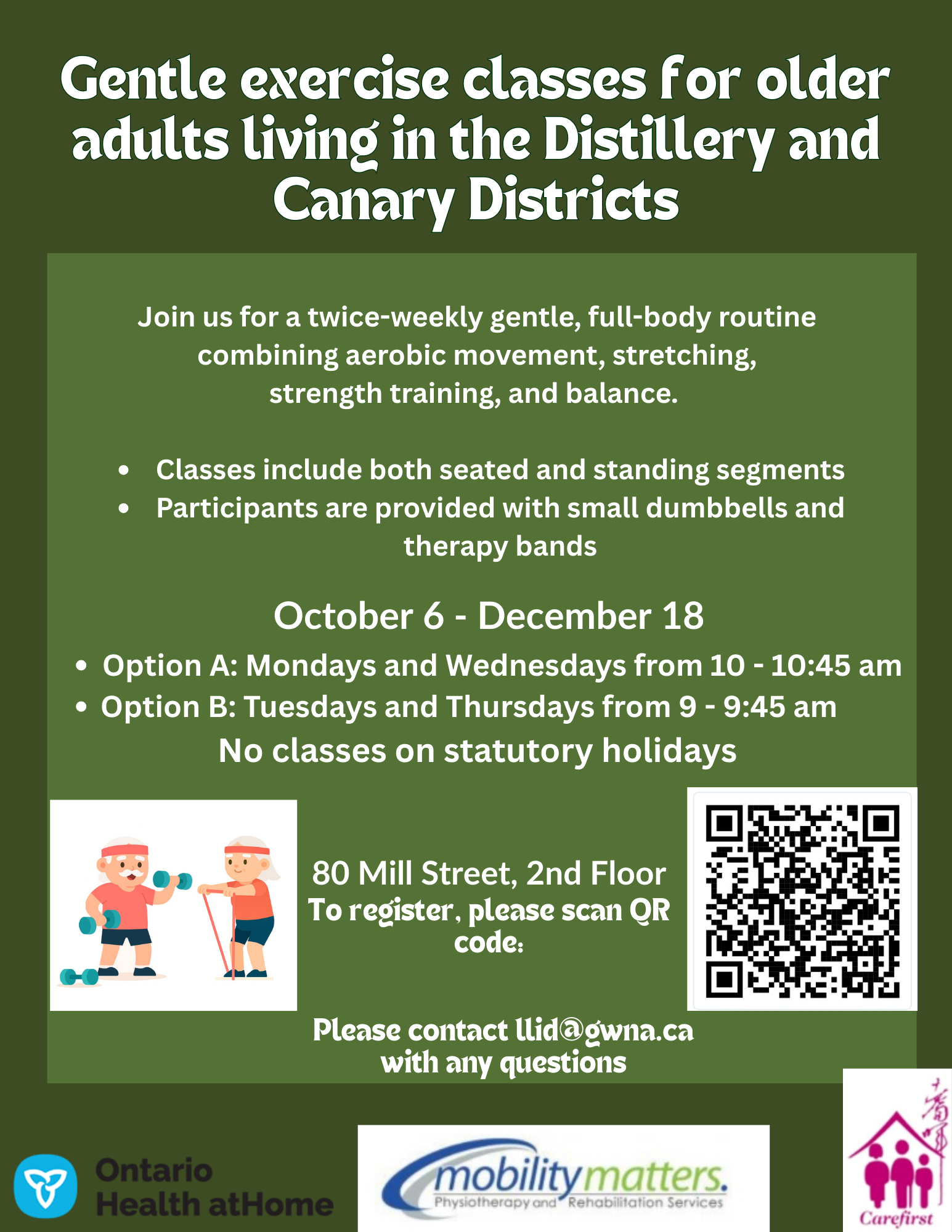Are you an older adult living in the Distillery District who has recently experienced a fall or wants to learn skills to prevent a fall?